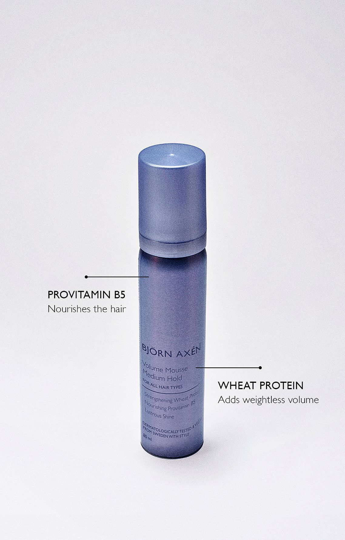 En mousse som skapar volym och ger medium stadga för att hålla håret på plats efter styling. Den gör att håret ser tjockare och fylligare ut med naturlig volym. Berikad med Provitamin B5 och Veteprotein som ger näring till håret.